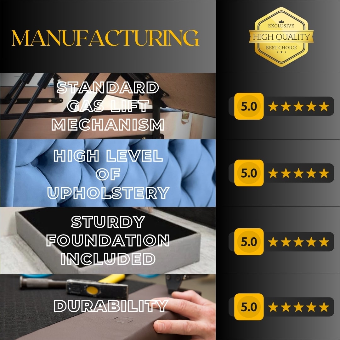 The sleek design of the bed complements the hidden functionality of the ottoman, creating a visually stunning focal point for your bedroom.