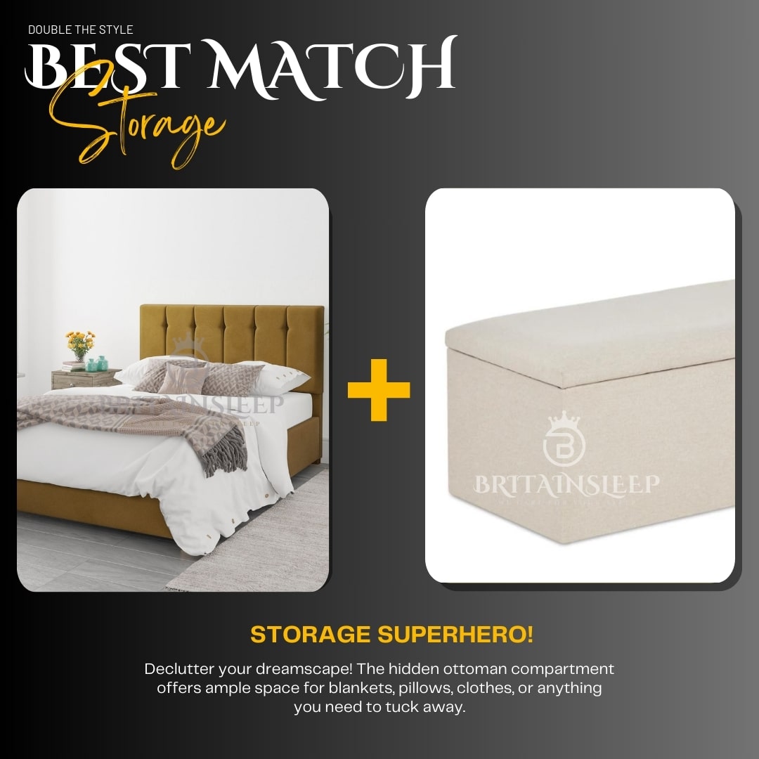 The sleek design of the bed complements the hidden functionality of the ottoman, creating a visually stunning focal point for your bedroom.