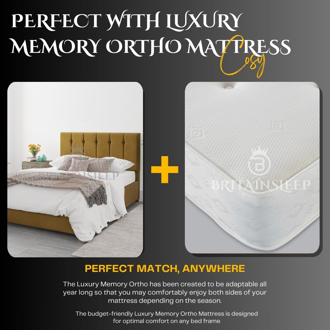 The budget-friendly Luxury Memory Ortho Mattress is designed foroptimal comfort on any bed frame, making it the perfect choice for this storage bed or any sleep haven!