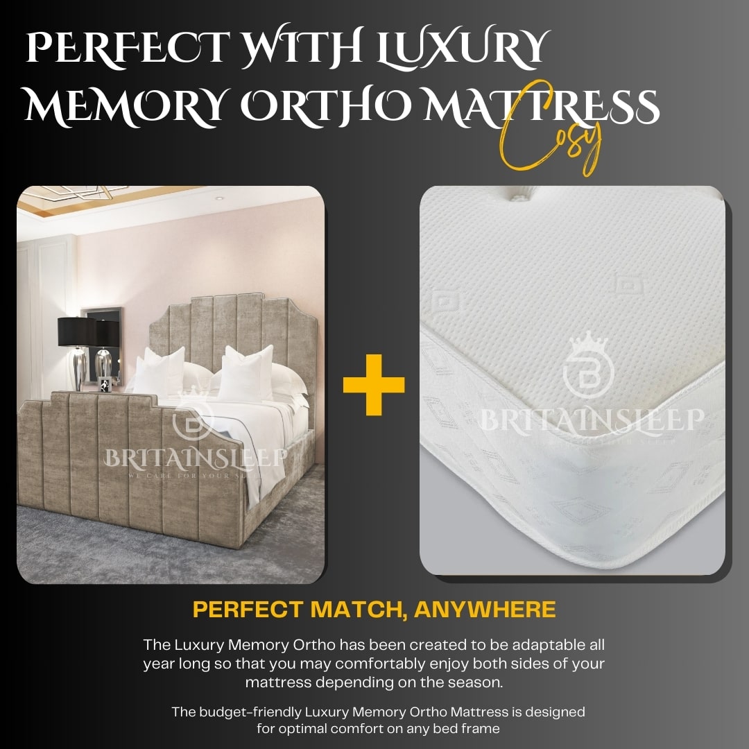 The budget-friendly Luxury Memory Ortho Mattress is designed foroptimal comfort on any bed frame, making it the perfect choice for this storage bed or any sleep haven!