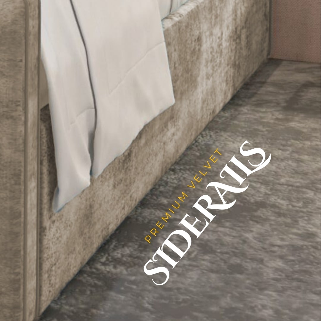 The Crown bed epitomizes luxury beyond its designer headboard and stylish footboard. Crafted with meticulous attention to detail by our skilled artisans in the UK, the thickly padded Side Rails seamlessly enhance the opulent comfort of this masterpiece.