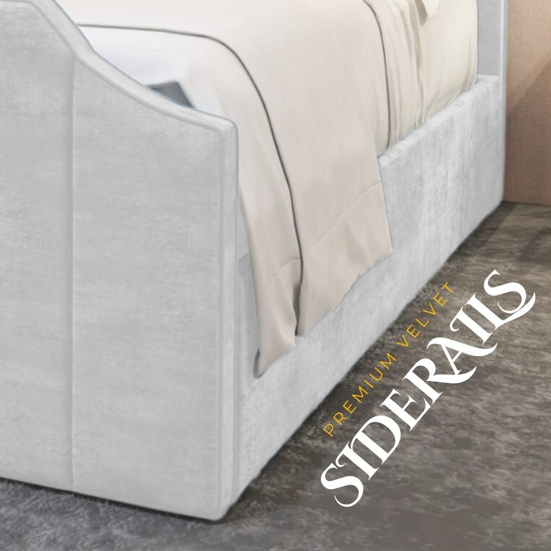 The Crown bed epitomizes luxury beyond its designer headboard and stylish footboard. Crafted with meticulous attention to detail by our skilled artisans in the UK, the thickly padded Side Rails seamlessly enhance the opulent comfort of this masterpiece.