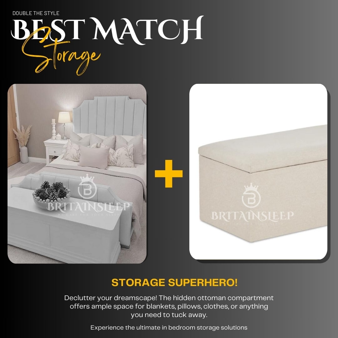 The sleek design of the bed complements the hidden functionality of the ottoman, creating a visually stunning focal point for your bedroom.