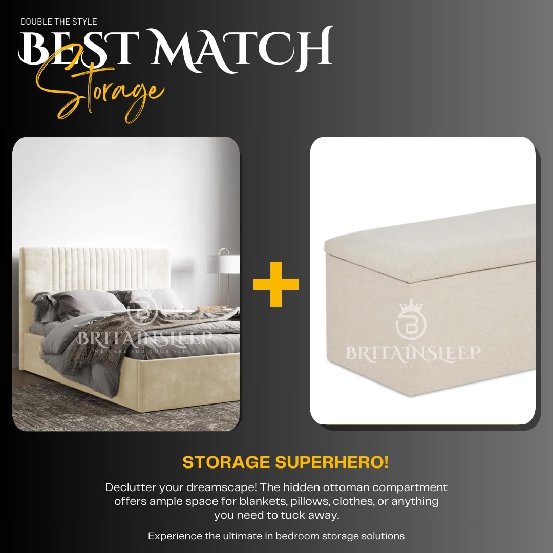 The sleek design of the bed complements the hidden functionality of the ottoman, creating a visually stunning focal point for your bedroom.