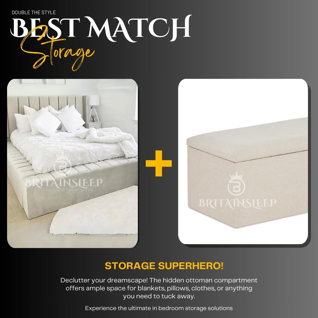 The sleek design of the bed complements the hidden functionality of the ottoman, creating a visually stunning focal point for your bedroom.