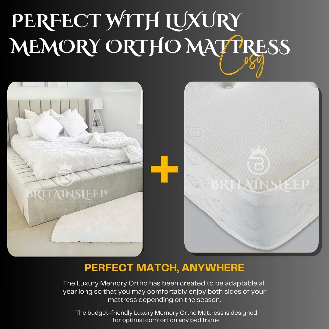 The budget-friendly Luxury Memory Ortho Mattress is designed foroptimal comfort on any bed frame, making it the perfect choice for this storage bed or any sleep haven!